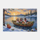 Bring happy, energetic charm to your holiday season with this beautiful Brittany Spaniel Christmas design! This magical scene features three alert, handsome Brittany Spaniels sitting attentively in a cozy wooden boat, gently floating on a serene snowy lake at sunset. The boat is beautifully adorned with glowing Christmas string lights and fragrant pine garlands, while the dogs wear festive scarves. They are surrounded by colorful wrapped presents and cheerful holly branches. Soft snowflakes gently fall, and the shimmering reflection of the lights on the water creates a truly magical winter holiday atmosphere. This design is a perfect Christmas gift for any Brittany Spaniel owner, dog lover, or admirer of festive and beloved sporting dog art, capturing the serene joy of the season.