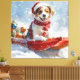 Brittany Spaniel Dog in Sledge Christmas Canvas Print