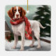 Brittany Spaniel Dog in Snow Christmas Ceramic Ornament