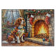 A cozy Christmas artwork featuring a cheerful Brittany Spaniel sitting beside a glowing fireplace adorned with stockings and twinkling Christmas lights. This festive holiday scene highlights the Brittany Spaniel’s joyful personality and loving nature, making it a perfect choice for dog lovers and warm seasonal decor. Bring the magic of Christmas and the spirit of companionship to your home with this heartwarming pet-inspired artwork.