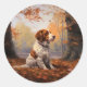 Brittany Spaniel in Autumn Leaves Fall Inspire Classic Round Sticker