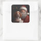 Brittany Spaniel With Santa Claus Christmas Square Sticker