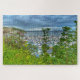Discover a hidden gem of the English Riviera with this premium horizontal 1014-piece jigsaw puzzle. Captured from a lush, green vantage point, this scene offers a peek at the bustling Brixham Marina through vibrant coastal foliage. A peaceful and artistic puzzle that celebrates the natural beauty and sailing heritage of Brixham Devon, England.