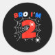 Bro I'm 2 Sder Web Theme 2nd Birthday Party Two Ye Classic Round Sticker