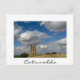 Postcard of the clouds over Broadway Tower, a folly on a hill near the town Broadway in the Cotswolds, UK with a white border and the text: 'Cotswolds'.