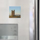 Souvenir fridge magnet with the folly Broadway Tower on a hill near Broadway overlooking the Cotswolds in England, UK at sunset with the text: 'Broadway, Cotswolds'.