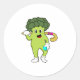 Broccoli at Hockey with Hockey bat Classic Round Sticker