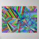 The image features a vibrant and colorful pattern composed of lines and triangles. It embodies an abstract artistic style, showcasing a sense of colorfulness that draws the viewer's attention. This artwork may invoke thoughts of broken glass or fractured crystals, reflecting various hues like a rainbow spectrum through its composition.
