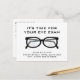 Remind patients to come in for their yearly eye exam with this fun modern appointment reminder postcard featuring a pair of broken eye glasses with an eye chart in the reflection of the lenses. Personalise by adding the name of the eye clinic. Perfect for optometrists and ophthalmologists.
