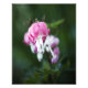 A photograph of a branch of a Bleeding Heart plant in a garden.