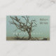 Double sided modern business cards with broken dead tree image on the front. Include a name with service (example is for a photographer). Add more information to the back of the card where an arrow divides the top and bottom wording. A modern, printed font is used.