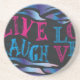 Zebra stripes in hues of blues and purple with colourful chalkboard Live, Laugh, Love