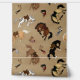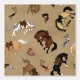 A tossed pattern with cowboys in colourful clothes and fringed chaps getting thrown by bucking broncos.