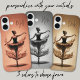 She makes a splash! This beautiful and graceful ballerina dances on the water. Even her ballet dress is made of liquid. This phone case would be perfect for the woman who dances. Easily personalise this case with your initials! There are three colours to choose from in this collection; bronze/brown, rose/pink, and monochromatic black and white.