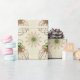 Wrap your holiday gifts with this Christmas angel of Hope digitally created on a textured off-white background with bronze metallic filigree and green gem stones holding a plaque with the message "Hope" She is in a repeated tile pattern surrounded by offset bronze decorative circles creating a holiday theme geometric pattern.