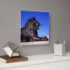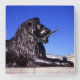 A sculpture of a bronze lion on the plinth at the foot of Nelson's Column, Trafalgar Square, London, England