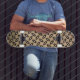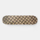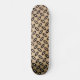 A close-up of a steel elevator floor gives this bronze-hued skateboard a cool, industrial look.