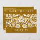 Save the Date Bronze Gold Caramel and White Vintage Victorian Floral Damask Shown Deep Rich Caramel Chai Tea But You Choose Card and Font Colours. Cheap Wedding Invitation Save the Date postcards
