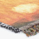 A quality printed throw has its advantages. This is a much finer weave throw than its loopier cousins, and though lighter, it is worth the investment for custom room accessorizing. The back is much prettier than the typical brown, and the fringe on the long sides very vivid, the selvage nicely done. Before photographing, I washed the throw in cold water, delicate, with a thicker woven throw the same size. On tumble dry low, this throw was dry in half the time as the other. This is a very practical quality if you use throws for furniture covers or to wrap up in frequently. The sleekness of the fabric makes it a great layer for accenting or protecting without the feeling of sitting on too much stuff. Perfect for napping or when you feel a light chill coming on. The color printing is beautiful and on this fabric, matched the design and color of my Photoshop image. This is an advantage for blending room fabrics and colors. The fringe on the short sides prints the colors from the design image and therefore varies from the side fringe. I streaked a white fractal line through the plaid pattern to give the illusion of weaving. This printed as crisp as an illusory thread, and put some white in the short side fringe, showing another advantage of print vs loomed- for artistic purposes, line lines, detail, and color integrity can be planned and preserved. My loomed throws have color limitations and more of a needlepoint texture. Print throws reproduce an exact image. The throw felt a little stiff straight out of the package, but this went away in the first delicate wash. Of course I searched the wash water for ink or bleeding and there was none.