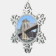 My personal view of the Brooklyn Bridge from the ferry dock in Brooklyn, NYC on a Christmas Ornament.