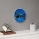 The clock did not take as long to arrive as I thought it might and was extremely well packaged. I didn't do the measurements so I didn't realize it is a little smaller than the average clock but that does not matter (just make sure you check if that's important to you).It is really nifty! It seems very solid and well made not flimsy at all. It has been going well and has kept good time in its few weeks on my wall. Nice product. Gets noticed too! Nicer in real life than the picture but true to the picture