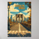 Brooklyn Bridge NYC Vintage Illustration Travel Poster