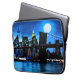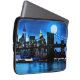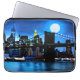 Laptop sleeve in an impressionist, digital painting of the Brooklyn Bridge, and the city beyond, under a full moon, with moonlight reflected on the water