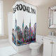 The street meets home decor with a Brooklyn view of the Manhattan skyline covered in graffiti. This fun work of art features the Brooklyn bridge, the Freedom tower, Empire state building, Chrysler building and an iconic gorilla. Choose a different background colour to match you bathroom decor.
