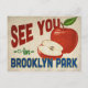 A charming Brooklyn Park Minnesota vintage travel postcard featuring a lovely red apple, along with fun retro style text that says, "See you in Brooklyn Park"