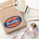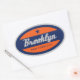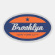 Oval signage design featuring the neighbourhoods of New York City. Official orange and blue colours of NYC. New York City borough of Brooklyn.