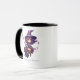 Introducing our enchanting Halloween-themed coffee mug, the perfect companion for your favourite brews during the spookiest season of the year. This delightful mug features a clean white background adorned with a charming design that's sure to cast a spell on you. At the centre of the mug stands a cute and stylish witch, complete with a purple witches hat, a matching purple dress, and whimsical purple hair.
