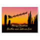 A Christmas card for your brother and sister-in-law showing Santa flying over the desert. Lots of tall cactus are seen in silhouette. Wish a merry Christmas from the desert with a lovely sunset coloured card.