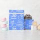 Cyclist birthday wrapping paper in blue and white. Personalise this celebration birthday paper with your choice of name or relative and age. Currently reads Happy Birthday Brother 30. Ideal for a brothers cycle gifts and cycling sports fan. Uniquely designed by Sarah Trett.