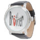 eWatch with Black Vintage leather strap round face large print black and red "Brother" Happy Sibling Day, for him birthday,
