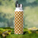 Checkerboard pattern with alternating brown and beige squares, arranged in a grid. The design is uniform and evokes a sense of order and symmetry.