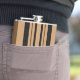 A simple abstract pattern of brown, black and tan vertical stripes creates an elegant, sophisticated hip flask.