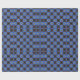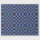 This bright pattern features a bright blue background with brown and navy blue squares. Inside each square is star shaped design.