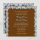 Brown and Blue Vintage Flowers Wedding Invitation shown on deep chocolate - but you choose card and font colours from almost 200 colours.