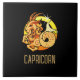Brown and gold Capricorn zodiac sign black Tile
