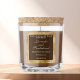 A label for candles featuring a gold foil border, brown interior, and white text.