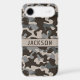 Customize this brown and gray camouflage iPhone 17 air case with your name in a trendy modern CAP font in brown on taupe. It's masculine and perfect for your favorite military, hunting, country or outdoorsman!