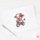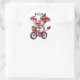 Cute brown and white cow cartoon looking excited while riding a pink bicycle with a basket of flowers. This adorable sticker is available in other shapes and sizes, but you may have to adjust the image size to fit odd shaped like a heart.