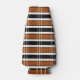 This bottle cooler has a geometric design of a plaid with brown and white lines on a black background.