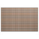 This fabric has a geometric design of a plaid with brown and white lines on a black background.