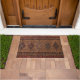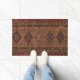A great door mat featuring an antique brown Persian rug with a geometric design.
