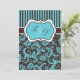 This modern aqua blue, brown, and white stripes with floral damask monogrammed wedding invitation on basic paper is perfect for an turquoise and brown wedding theme, destination wedding, or other special event with flare. It is fully customisable. If you require and matching items, please email your request to niteowlstudio@gmail.com.