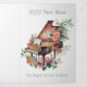 Piano recital tri-fold program, done in white, with watercolor artwork of a pretty brown baby grand piano and peach coloured flowers.  Personalise the custom text fields for your music themed recital.   Matching invitations, paper plates, napkins and cups are available.