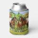 Brown Bay Appaloosa Horses In Summer Pasture Can Cooler
