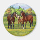 Brown Bay Quarter Horses In Summer Pasture Magnet