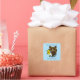 Brown Bear Blue Flowers Feather Bookplate Square Sticker